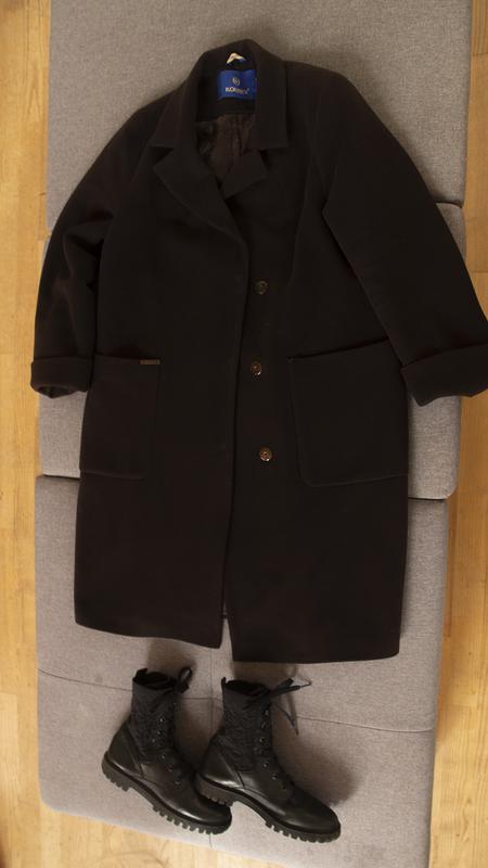 Пальто качественного пошива. Из приятной мягкой, бархатистой шерсти, утепленное. На кнопках.Замеры: ПОГ 43 см, под мышками полуобхват 55см, длина рукава в подвёрнутом состоянии 58 см, полная длина рукава 63см, Длин 100см. Размер EUR 44, USA XL , RUS 50. Мало носилось. Темно-шоколадного цвета. Силуэт немного бочонком.
