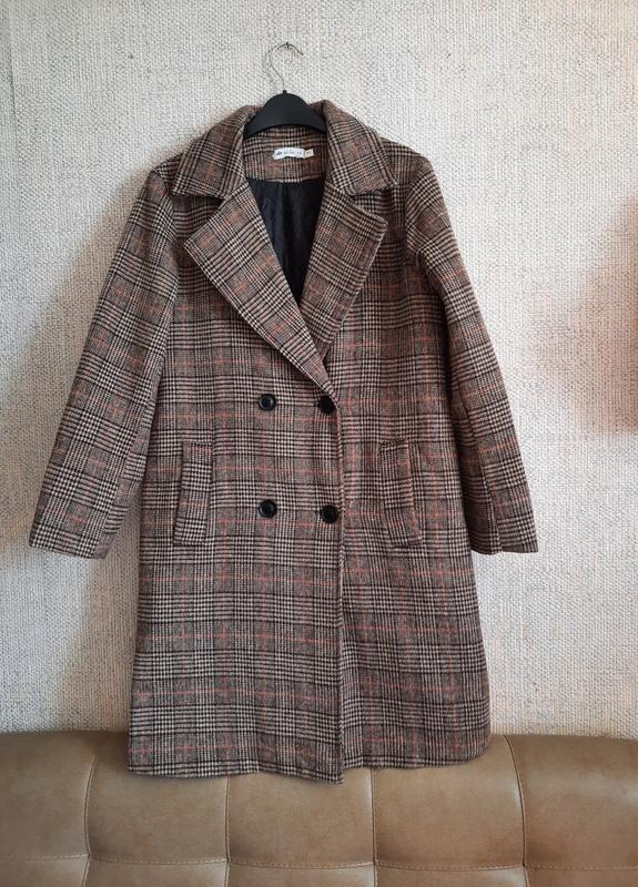 Красивое базовое пальто в клетку. Актуального цвета. Состояние нового без дефектов. Имеет кармашки, на подкладке. Размер на наборе L, подойдет на М. Замеры: длина по спинке: 87 см, длина рукава: 55 см, плечі: 40 см. пол обхват груди: 48 см. Доставка: отправляю через Новую Пошту и Укрпочту.