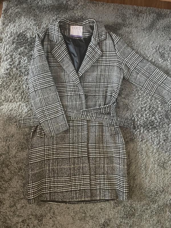 Удлиненное пальто в клетку, состояние отлично. По замерам воспользуйтесь.