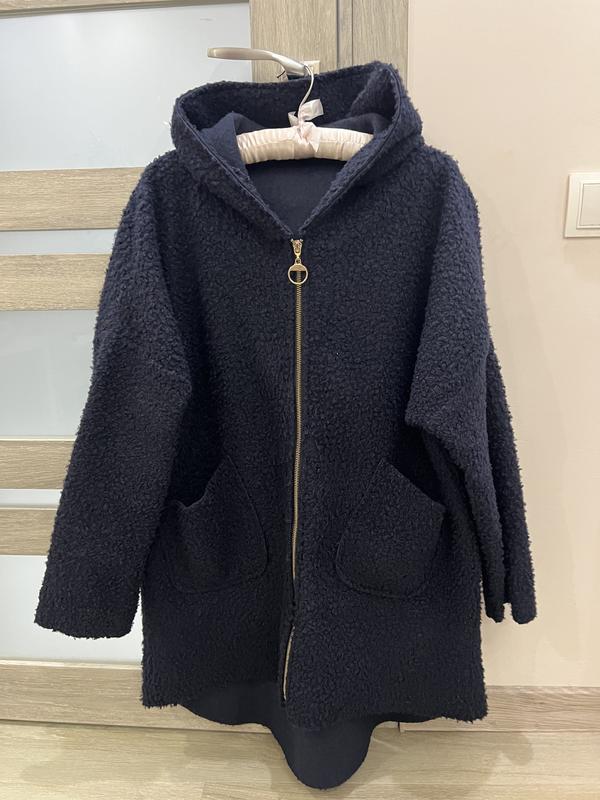 Кардиган - пальто на замке с капюшоном Цвет: синий Оверсайз Материал букле