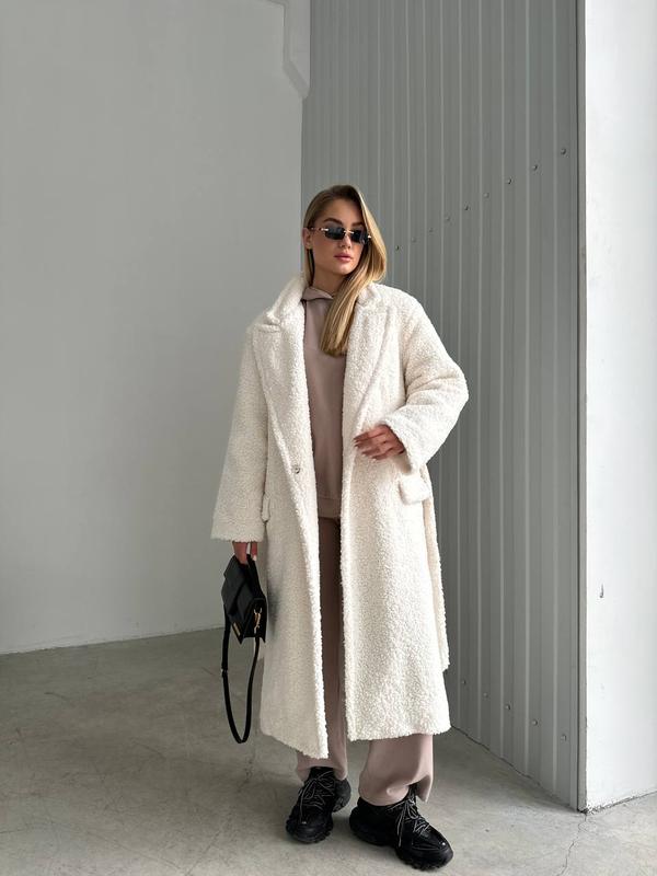 ‼️ОТПРАВЛЕНИЕ ВПРОДОВЖ 2-6 РАБОЧЫХ ДНЕВ!!️ Пальто ”Роса” зимнее ✅ткань - искусственный мех, подклад - нейлон, утеплитель плотностью 150 ✅ рабочие вместительные карманы, свободного покроя, плечо спущенное, с поясом, фиксируется двумя кнопками изнутри. ✅размер универсальный 42-44 ✅цвета - кэмел, молоко, серый, черный. (✔️можно заказать 40, 46, 48, 50, 52 размер, ждать 2-6 дней, +200) Замеры: Размер 42-44 Плече - 16 см Длина рукава- 60 см Ширина спинки - 54 см Длина изделия - 118 см Сезон зима! До -20❄️