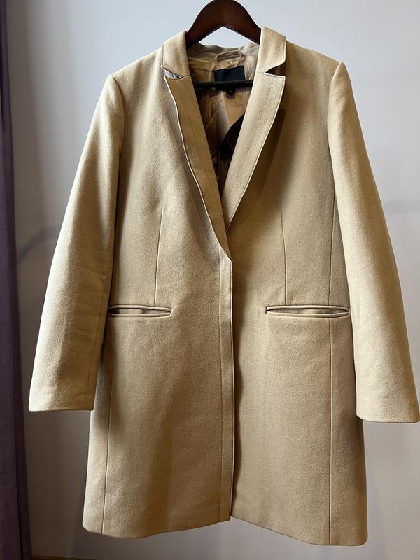 Классическое шерстяное пальто цвета кемл. Бренд Banana Republic. Очень красиво сидит по фигуре. В составе 78% шерсти! Внутри очень красивая подкладка. Подойдет на осень-весну. Размер 14 Рукав 64,5 Длина 89 ПОГ 56