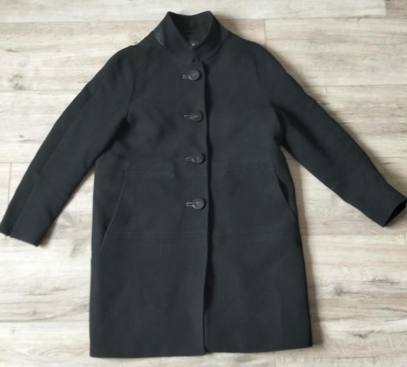 Шерстое пальто Massimo Dutti Прямое шерстяное пальто 60% шерсти, классического кроя.Массивные пуговицы,с зади имитация пояса, короб стойка... Замеры рукав 52 см полуобхват груди 45 см длина по спине 80 см