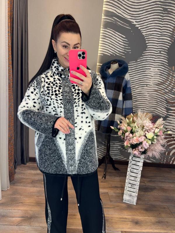 сказочно красивая и теплая курточка прямого кроя, на молнии спереди, удобными карманами по бокам, невысокой стойкой на воротнике, отделкой брошью со стразами и практичным шнурком внизу, выполнена из мягкой и пушистой альпаки с ярким рисунком, курточка первой минуты попадает в наши сердца и гардеробов, благодаря удачному крою и принту она легко комбинируется с вещами и обувью разных цветов размер единственный 50-56 длина 70 см, объем груди по изделию 126 см тянется до 136 см, длина рукава от шеи 70 см код 0640