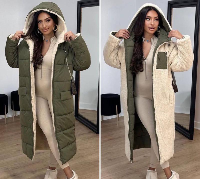 Куртка двусторонняя арт. mk. 390(click) Сегодня в шубке, а завтра в курточке. Меняй свой образ по настроению и будь самой стильной! Супер теплая, двухсторонняя курточка-шубка. Ткань: плащевка Канада, силикон 250, шубка Тедди Размеры: S (42-44), M (46-48), L (50-52) Цвета плащевки: черный с черным мехом, черный с беж мехом, беж, шоколад, хаки Длина 105 см Цена 1870 грн