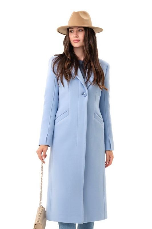 Пальто женское демисезонное, приталенное, элегантное, кашемировое, шерстяное, голубое