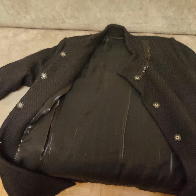 Шикарное теплое пальто Хендмейд из шерсти р.50-52 Теплое и удобное. Черного цвета. С утеплением и подкладкой. Утепленные рукава и воротник стойка. Не важке. Без кишень. Верх украшен красивыми пайетками. Застегивается на кнопки. Фурнитура качественная. В дополнение есть капюшон который пристегивается и отстегивается к вороту маленькими крючками. Измерение проведено по внешней стороне: ПОГ - 60 см. Полуобхват бедер - 71 см. Длина рукава - 60 см ( можно удлинить за счет подворота на 7 см ). Длина - 93 см. Сток.
