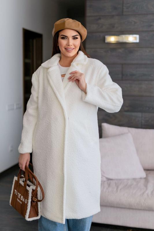 Женское пальто длинное миди удлиненное теплое букле тедди барашек шуба шубка без капюшона...