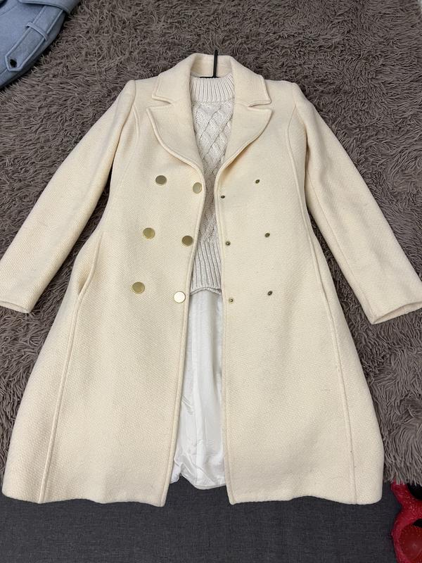 Продам круте кремове пальто, застібається на кнопки, має кишені, на підкладці. Тканина фактурна, тримає форму. Бірка зі складом відсутня, але у складі точно присутня шерсть. Розмір s Стан нового, не носила. Ог 42 От 38 Об 46 Довжина 94 Рукав від плеча 61 Тягнеться, одягнуто на параметри 90-65-90 + светр, сідає чудово!