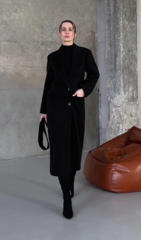 Пальто женское длинное демисезонное шерстяное, весеннее осеннее, черное