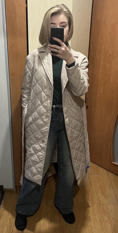 Пальто стеганое. размер xs/s, мой рост 168 см. Имеет 3 пуговицы и пояс, карманы. Пошито на заказ, относила один сезон. Стан - идеальный
