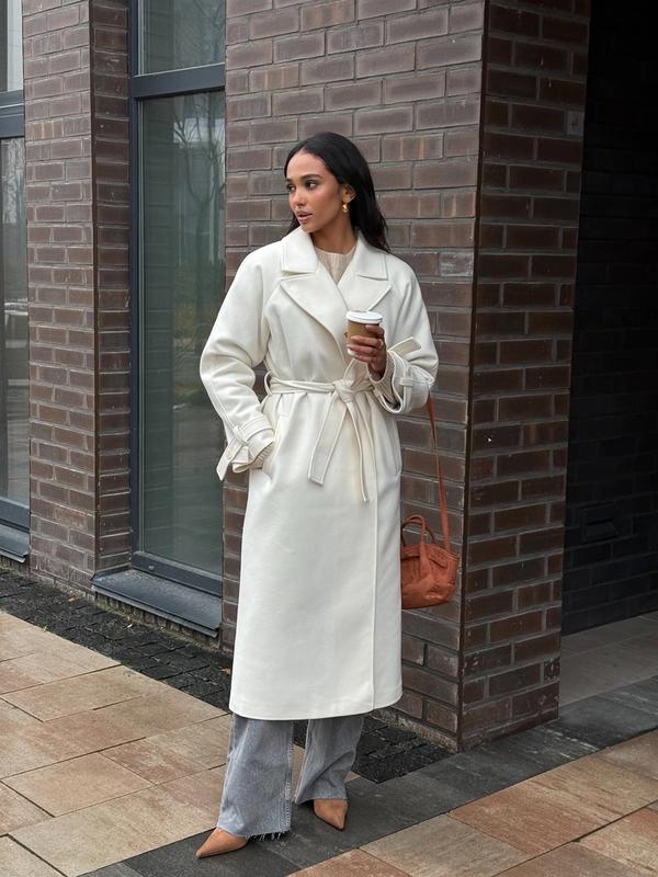 Пальто с утеплением молоко Зимний вариант пальто, внутри основа с утеплителем Thinsulate 100 (надежно сохраняет тепло и позволяет беспрепятственно испаряться лишней влаге. Этот утеплитель не сковывает движений и обеспечивает полный комфорт в морозы.) До -15 градусов. Ткань кашемир. Пальто застегивается на поясок, имеет боковые карманы.