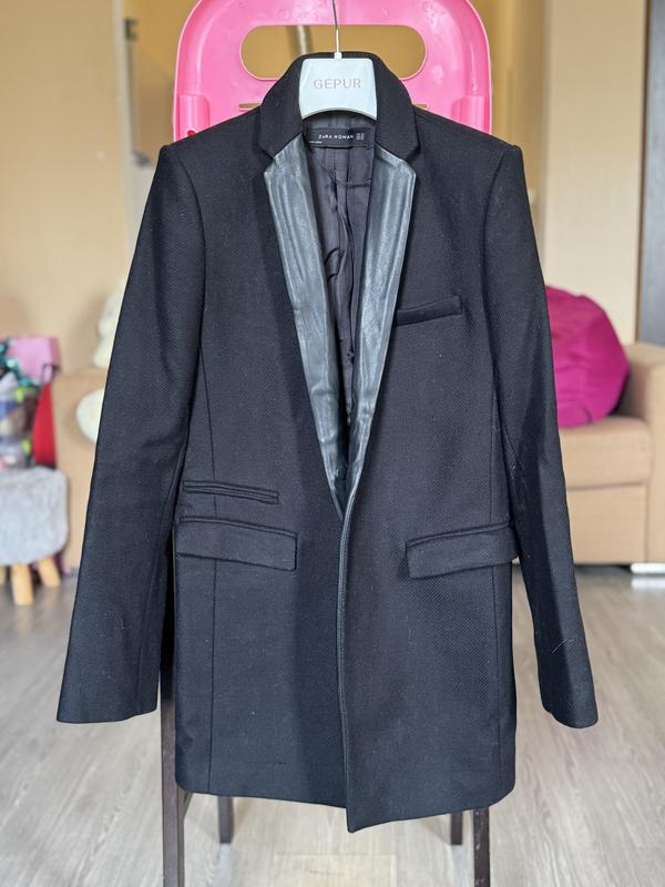 Пальто Zara. Шерсть в идеальном состоянии. А на шкірі є нюанси, прикріплене фото. Размер S-XS
