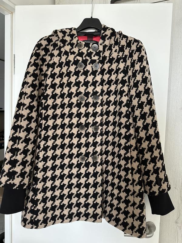 Теплое пальто на весну/осень или на теплую зиму. В идеальном состоянии, не тяжелая и приятная к телу. Размер 46 украинский или 40 европейский. Свободный крой. Есть капюшон и теплые манжеты. Модный принт, подходит на любой возраст. Длина 82см, длина рукава +манжет 67см. Дефектов нет. При необходимости выполните дополнительные замеры и фото. Отправка новой по почте.