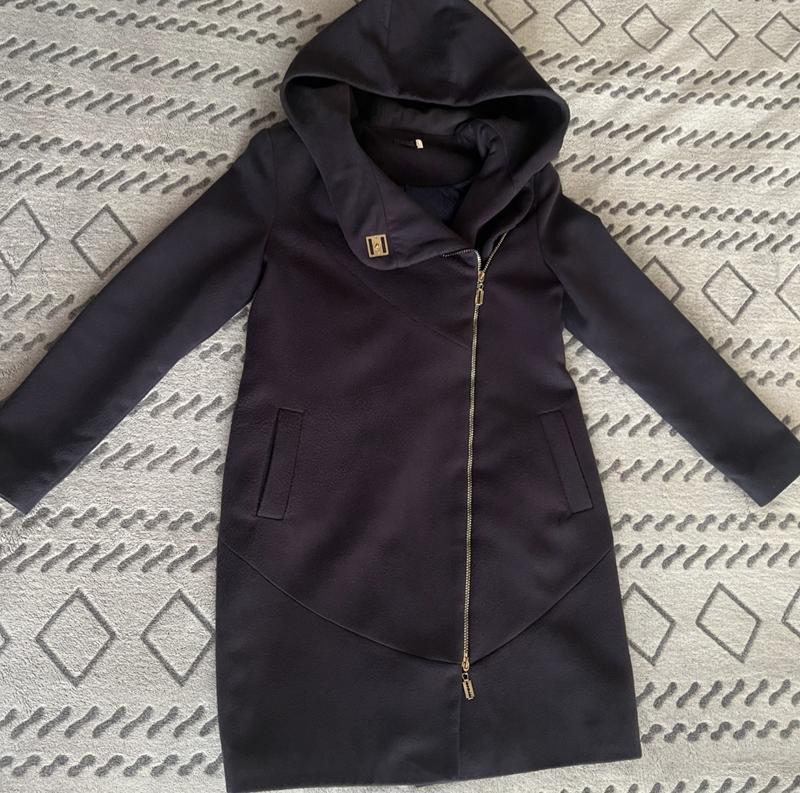Продам пальто темно синего цвета в идеальном состоянии. Размер 46. Длина 93 ОГ 48 Рукав от рубчика 62 Рукав от плеча 70