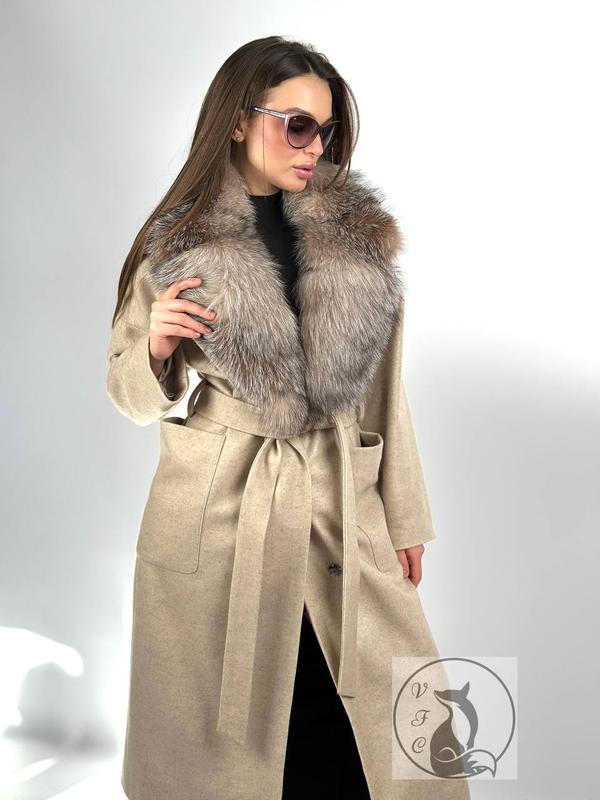 Пальто женское длинное бежевое с натуральным мехом блюфрост. размеры с 42 до 54