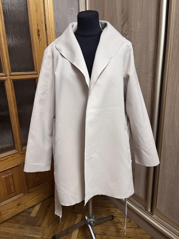 Легке пальто на поясі, молочно білого кольору. Стан ідеальний. На бірці ХЛ, але як на мене, краще буде на Л