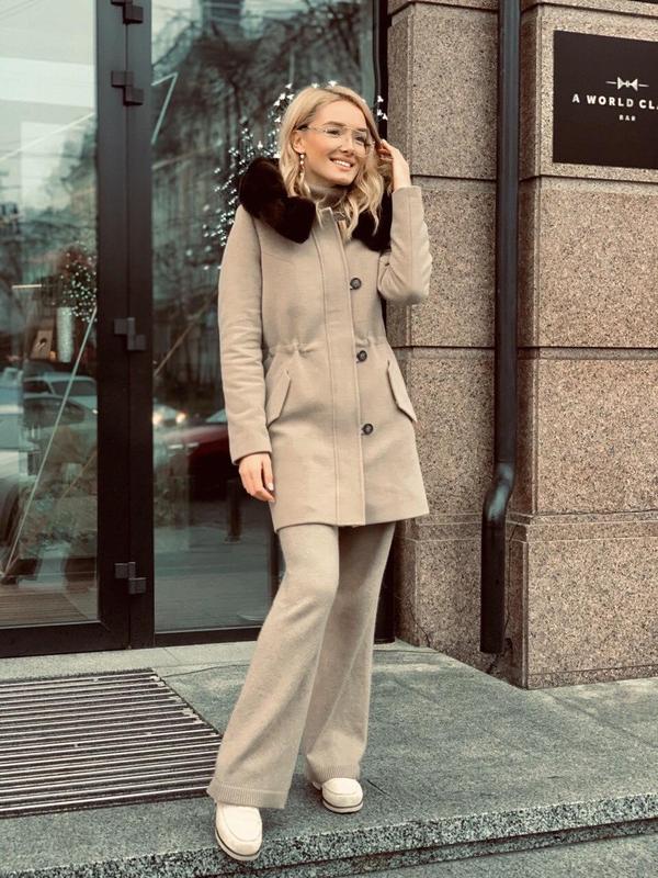 Невероятное женское пальто с натуральным мехом норки. Сделано из итальянского кашемира. количество ограничено
