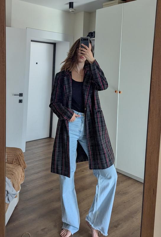 Пальто весеннее Sinsay серое в клетку с шерстью в составе. Xl 42 размер. Смело подойдет на М, кто любит более свободную. Материал приятный на ощупь, не плотный. Состояние новое. Заміри на фото. Одето на параметры 175см, 86-73-97