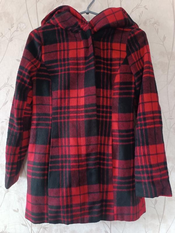 Теплое клетчатое пальто coffeeshop/xs / с капюшоном / на подкладке / импорт