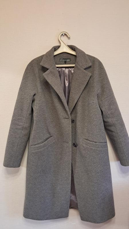 Зимнее пальто с длинным серым шерстяным материалом. Состав на фото s/m Обхват груди 100 Обхват талии 84 Обхват стегон 108 Длина 102