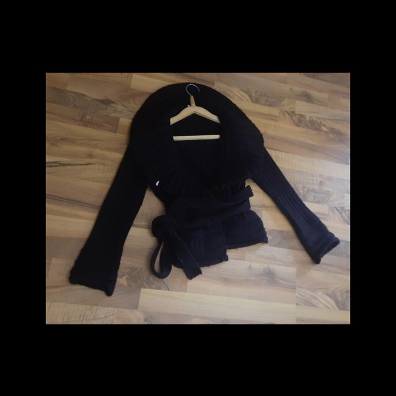 Очень классная кофта. Огромный воротник, который шикарно смотрит и еще и можно застегнуть, если стало холоднее ( фото). Длинный поясок который несколько раз обматывается вокруг талии. Рукав пошит конусом и сама кофта также пошита по принципу песочных часов, что очень улучшать фигуру. Поставите в 76 пальто, потому что очень теплое, можно носить вместо пальто. Для холодного октября или апреля, мая. Единственное ее нельзя носить в растяжимом состоянии - она на запах и пасок очень длинный, так что использовать как верхнюю одежду ( когда в помещении холодно- в пальто вы не будете сидеть, а в кофте - именно оно.) на все вопросы ответь
