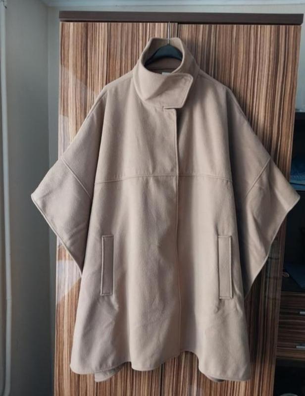Модное трендовое бежевое оверсайз пальто в стиле кэжуал пончо h&m