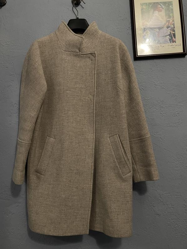 Пальто з закругленою лінією плеча, стильний крій цього сезону. Шерсть, розмір s-m, заміри є на фото