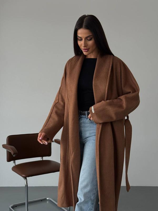 Кашемировое пальто с поясом в стиле оверсайз женское демисезонное