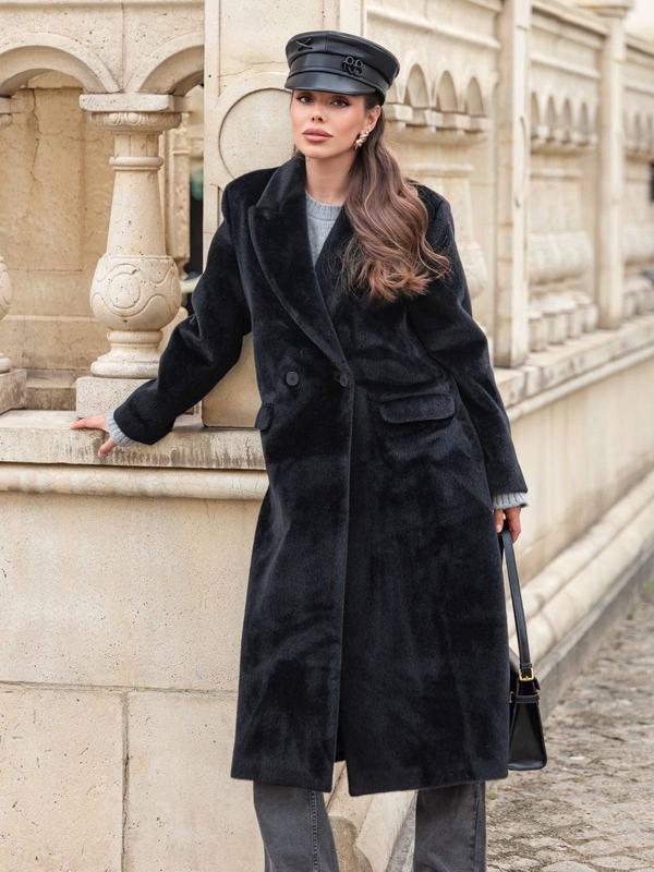 Элегантное пальто из искусственного меха черное | 91759