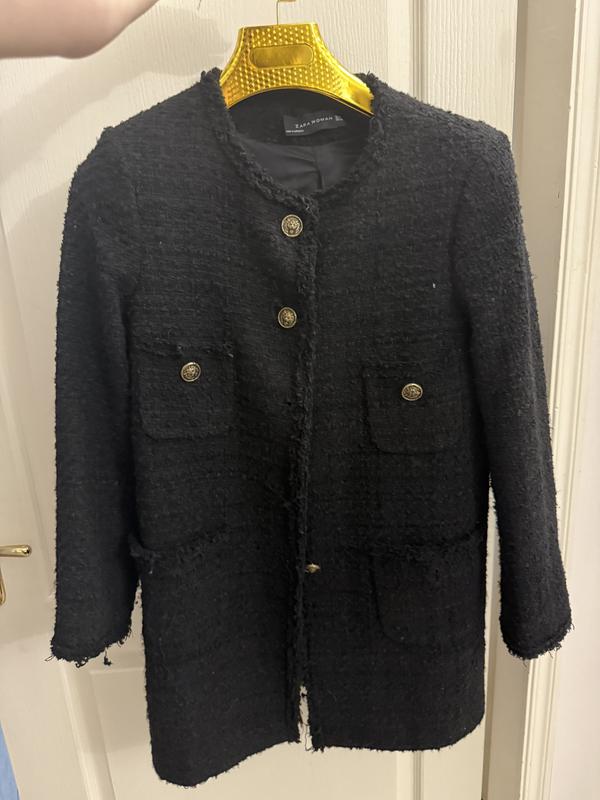 Пальто піджак ZARA в стилі OLD MONEY, золота фурнітура, не вистачає однієї пуговки, можна не застібати тоді не видно, можна перешити всі, або придбати таку як на пальто! Саме через це дуже знижена ціна!
