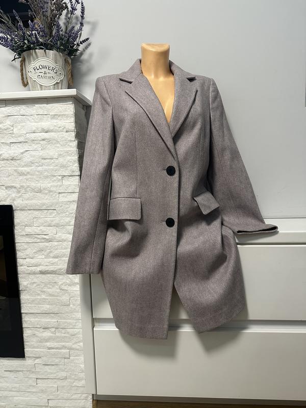 Оригінальне пальто демісезон Гарний колір,якісна тканина з чудовим складом 70%шерсті,10%віскоза,10%лайкра, Стан нове повністю Р.44,довжина92,пог51,талія49,бедра 54,плечі 40 Рукав 63