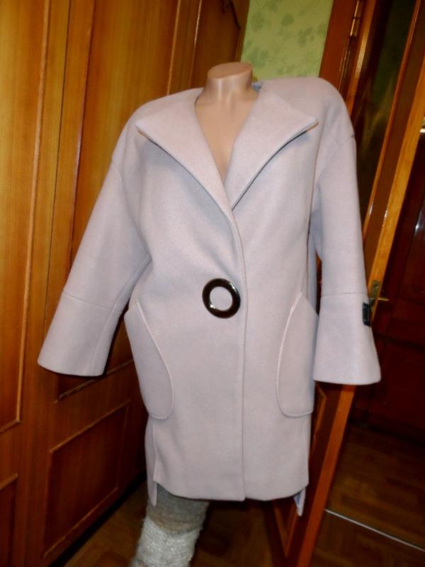 Красивое теплое пальто olko р.м пудровое шерстяное короткое полупальто 65% шерсть
