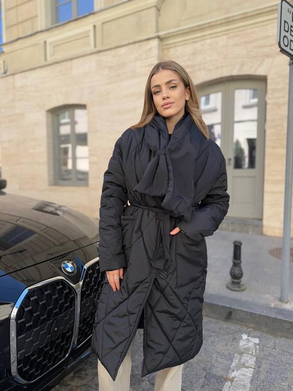 Стильное стеганое пальто oversize кроя с поясом. легкое, но теплое