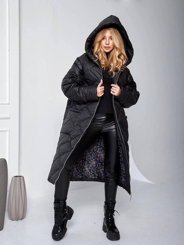 Мш 14.10 Пальто зима Артикул: 01/5/47/103 Тканина: Monkler-водовідштовхувальна Наповнювач синтепон-200 Стьобане, з глибоким капюшоном, кишенями. Підкладка-принтована Рукав реглан, манжет. Застібка: змійка, двостороння. Колір: Чорний 50-56 Виміри: 50-52-54-56 розмір О/Г-144 см О/Б-142 см Довжина виробу по спинці: 115 см Довжина рукава, від капюшона-80 см В2В