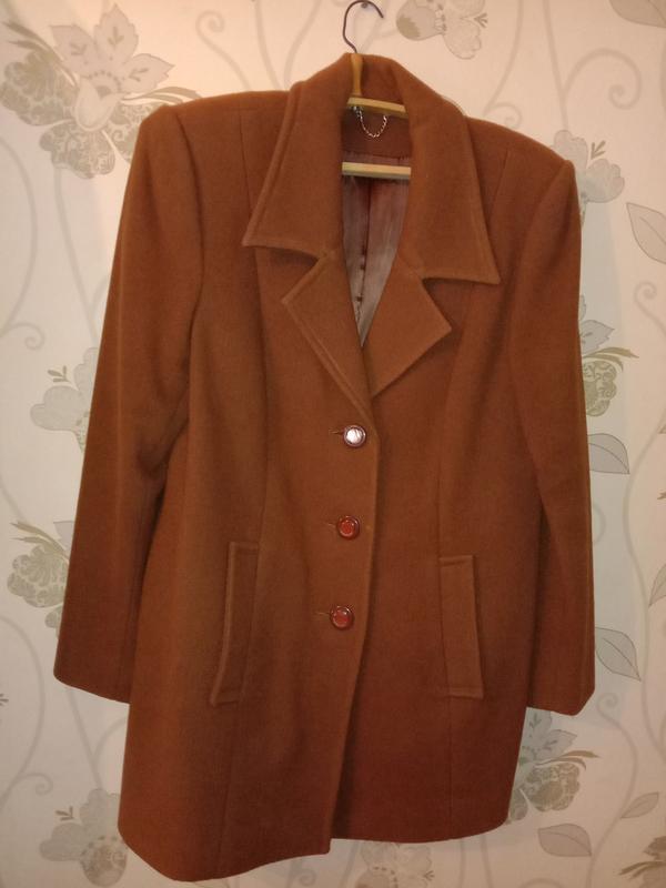 Размер 48-50. Состав ткани натуральная шерсть, силуэт приталенный классическая модель, цвет молочный шоколад. длина 82, полуобъем груди 52, полуобъем талии 49, полуобъем бедер 58, длина рукава 62.