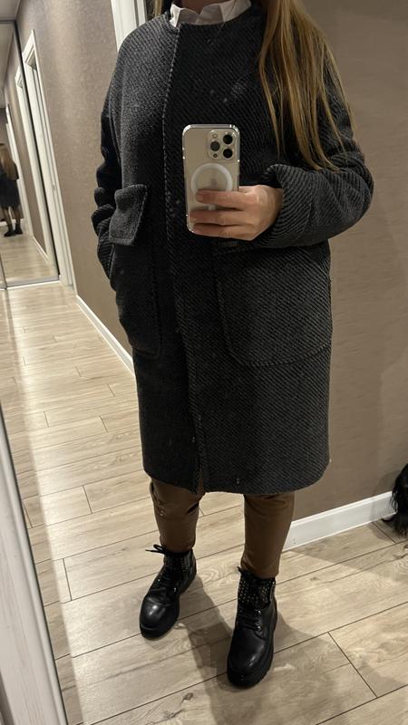 Жіноче демісезонне пальто сірого кольору, шерсть 90%, розмір 36-38