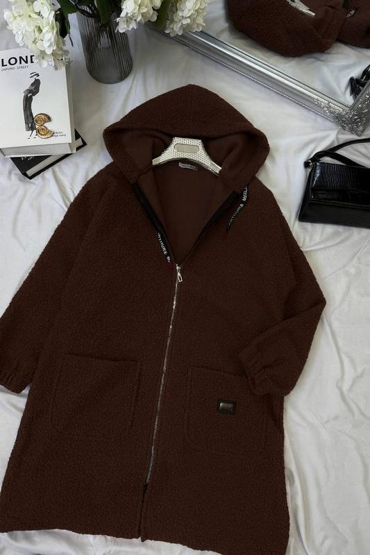 Тепле тренч пальто букле каракуль шоколад мод.4212