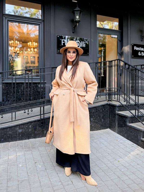Пальто Арт 05428.50- світлий беж 5428- чорний Посилання на фото в файлах: матеріал: вовна 30%, акрил 45%, лавсан 25%. Підкладка стьобана на синтепоні 100. Крій оверсайз, чоловічий двобортний піджак (тренд цього сезону). Підплечники вшити. Застібки – гудзики, додається пояс – можна приталювати, створюючи інший стиль образу. Довжина виробу 124 см, довжина рукава – 63см 🟩 🔥Розміри: 42-46, 48-52 ☘️42-46: на ОГ до 100, ОС 88-102 см 🍀48-52: на ОГ та ОС 104-115 см (130 см по виробу без урахування запаха) 🔥🟩Розміри: 54-58, 60-64- 💥31 у,о 🍀54-58:ОГ та ОС до 128 (148см - по виробу без урахування запаха) 🌿60-64: ОГ та ОС до 140 (158 см - по виробу без урахування запаха)