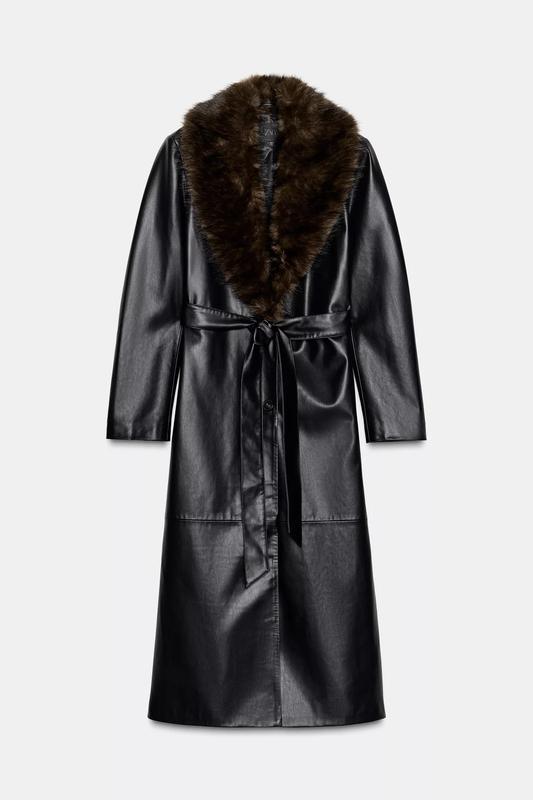 Пальто с воротником-лацканом с вырезами и съемной вставкой из искусственного меха. Длинные рукава. Боковые карманы. Застежка на пуговицы спереди.