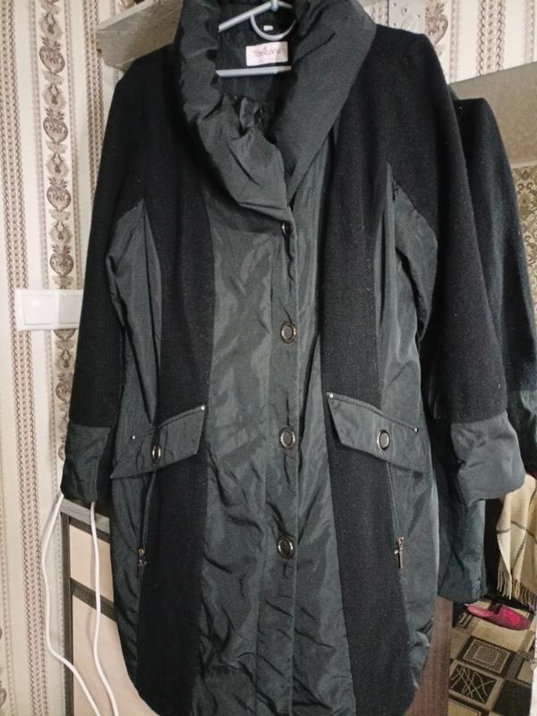 Классное женское удлиненное пальто, комбинированное шерсть и баллонловое. Воротник баллоневый дутый, приталенная. Застежка молния и кнопки. Есть два кармана. Объем груди 110 см, длина 95 см, рукав 62 см. Оплата продавца на карточку.