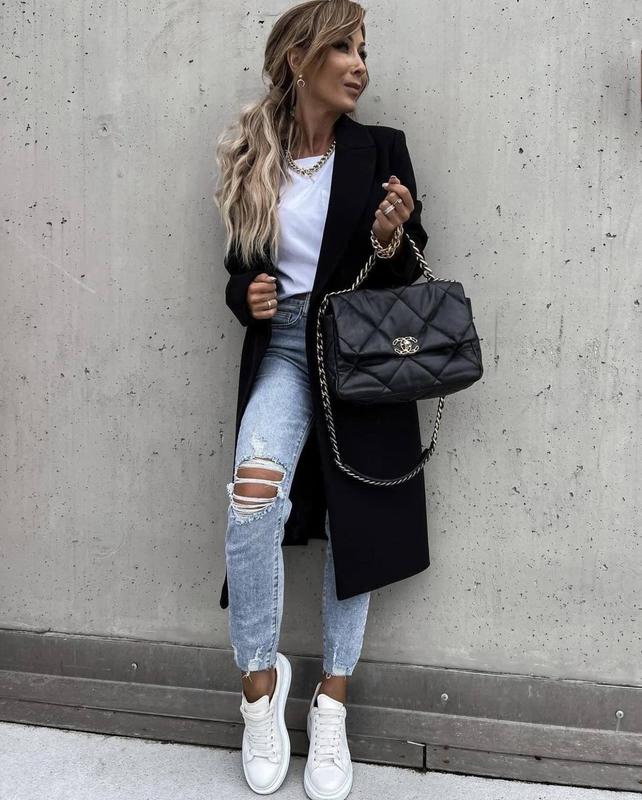 Пальто №549 Цена 1150 грн Ткань кашемир Цвета-черный, мокко Модель отлично смотрится на фигуре, придавая стройности и подтянутости силуэту. Стильное демисезонное пальто, длина миди, классический прямой крой, воротник с отложными бортами, втачные кармашки с клапанами, застежка на пуговицы Замеры изделия 42-44 гр 95,стена -103,рукав 63,длина 106 46-48гр 102,стегна -111,рукав 63,длина 106 50-52 гр 111,бёдра -119,рукав 63,длинна 107 54-56 гр 119,бедра -126,рукав 64,длинная 108