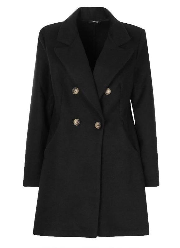 Пальто boohoo (новое) — женское черное, кашемировый стиль, на пуговицах, классический крой...