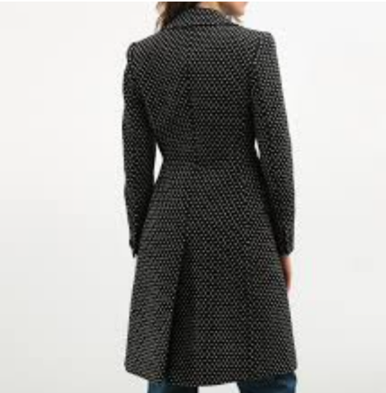 Женское притупленное черное шерстяное пальто в белую крапинку от next 100% шерсть