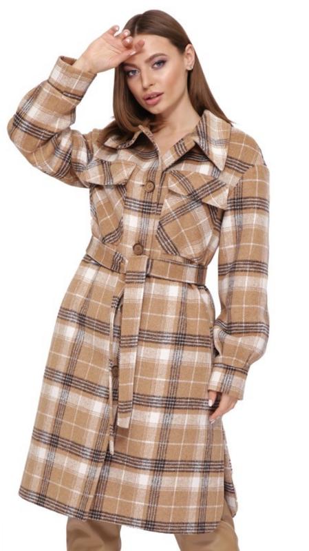 Пальто-сорочка emass бежево-коричневе у клітинку, розмір 42