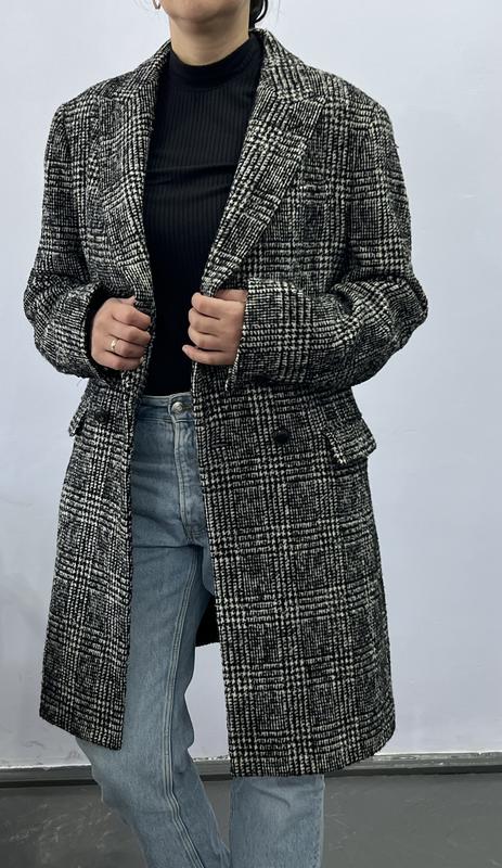 двобортне шерстяне шикарне пальто Spao Відомий бренд пальт оверсайз орієнтовно на зріст 160-170 см. Фактурна груба тканина, досить тепле. Легке в догляді, не чіпляються ворсинки. 74% шерсті Стан нового. довжина 103 см; ПОГ 54 см; ПОТ 50 см; стегна 58 см; низ 60 см; рукав 65 см; плечі 44 см. на фото зріст 170 см.