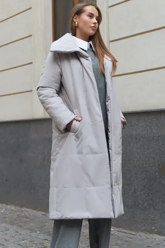 Коллекция Winter 25 Материал итальянская премиальная плащевка Твил (мягкая, матовая, водонепроницаемая), наполнитель синтепух 250 Цвет свет серый Фурнитура кнопки Фасон прямой Сезон зима, демисезон Декоративные элементы отложенный воротник, пояс Конструктивные элементы карманы Комплектация пальто, пояс Уход за одеждой ручная стирка до 30° Длина изделия S-M = 118 см, L-XL = 120 см, XXL-3XL = 121 см Длина рукава S-M = 62 см, L-XL = 63 см, XXL-3XL = 65 см