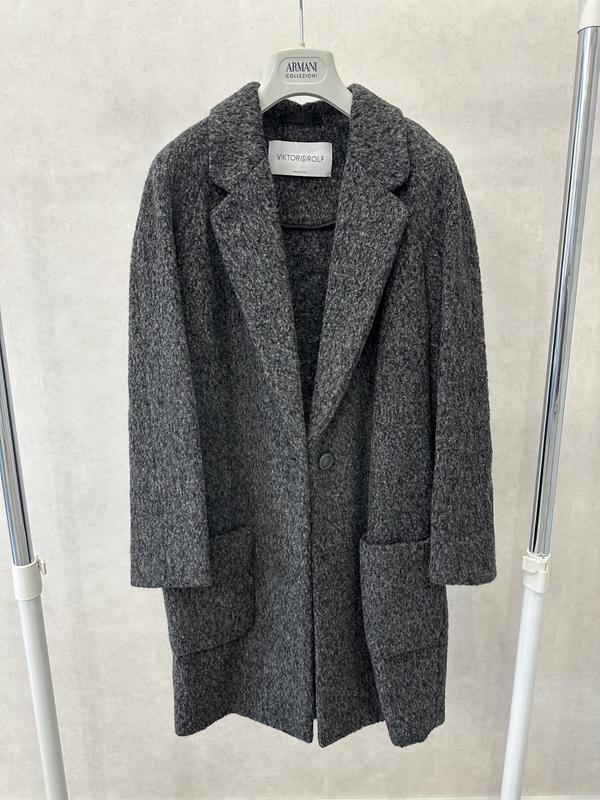 Оригінальне пальто Viktor&Rolf, виготовлене в Італії. Матеріал: 68% альпака, 24% чиста вовна, 8% поліамід. Фактурна тканина букле, класичний крій, одна гудзикова застібка, дві накладні кишені. Стан відмінний — без дефектів, з власного гардеробу.
