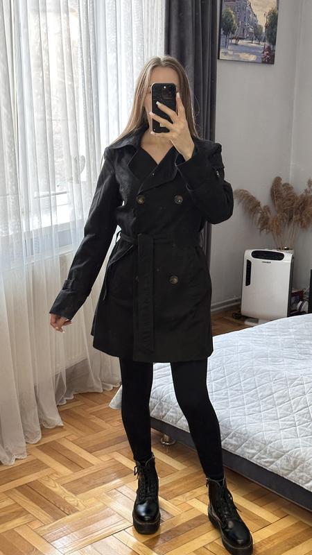 Чорний тренч, легкий та зручний, на теплу осінь, по етикетці М але краще підійде на С, ( на фото одягнений на розмір с).