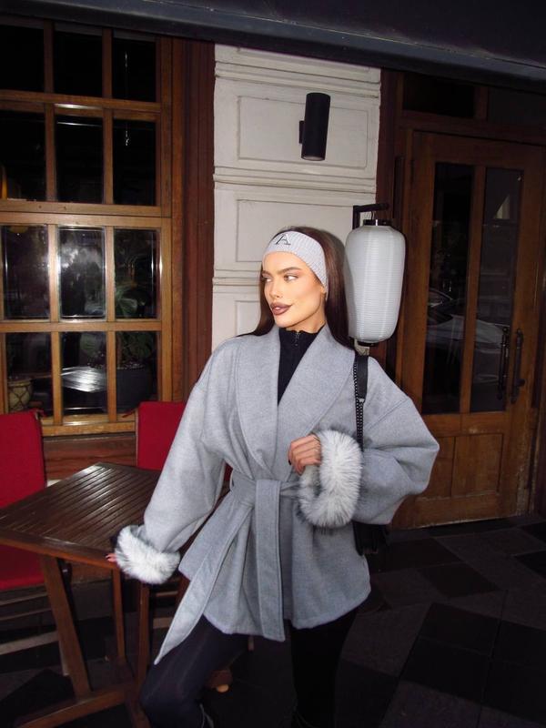 Стильне пальто оверсайз з кашеміру та штучним хутром на рукавах